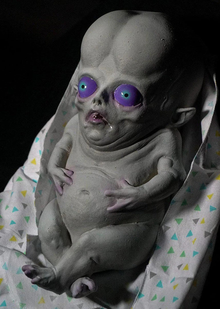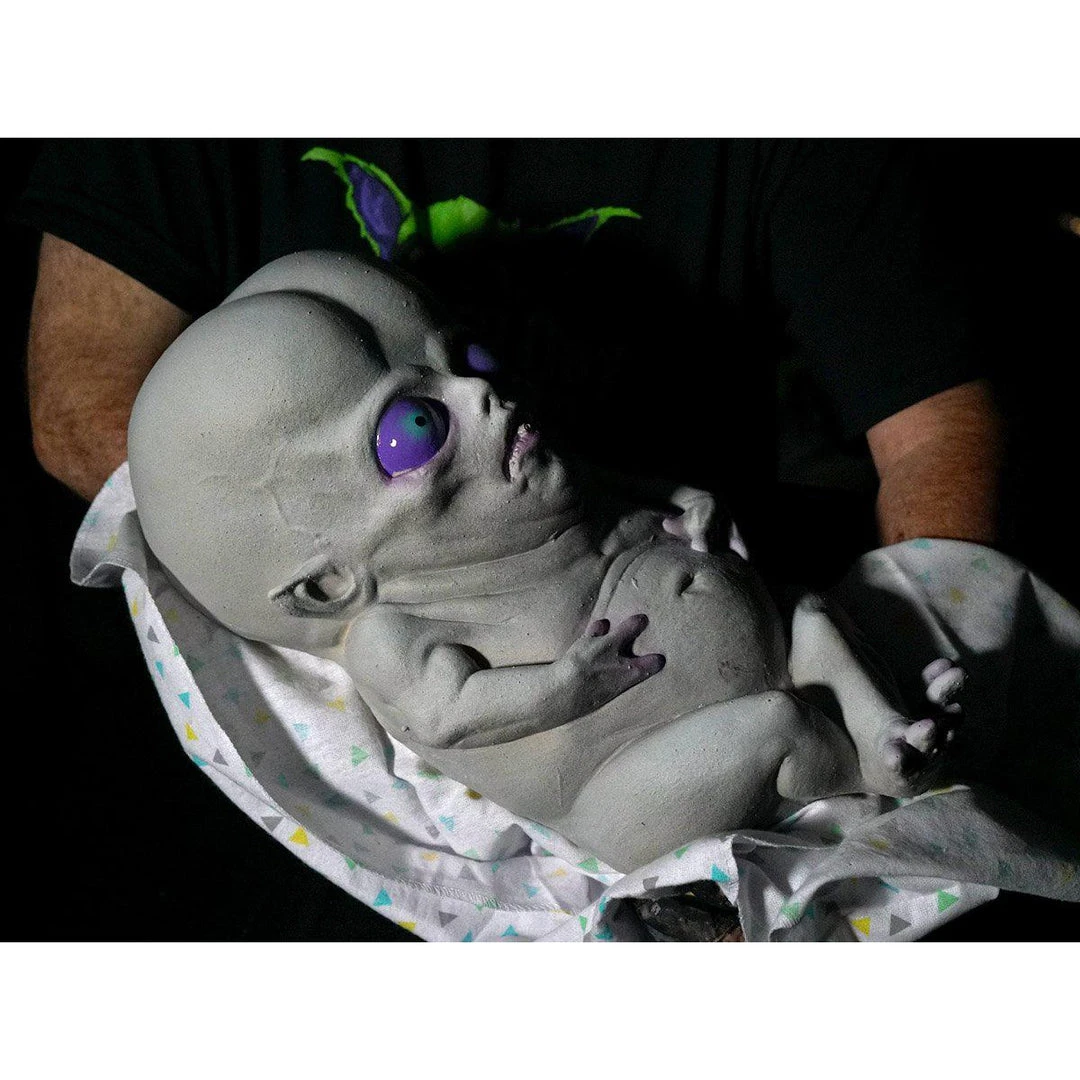 Baby Creeton is an adorable alien prop, based on Creeton, the Distortions Unlimited classic character. This prop is crafted of latex and foam filled, and includes a baby blanket and squirt bottle in the back.