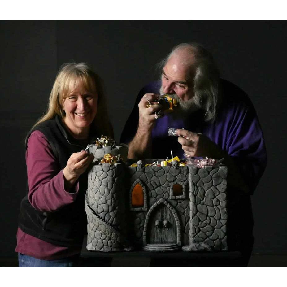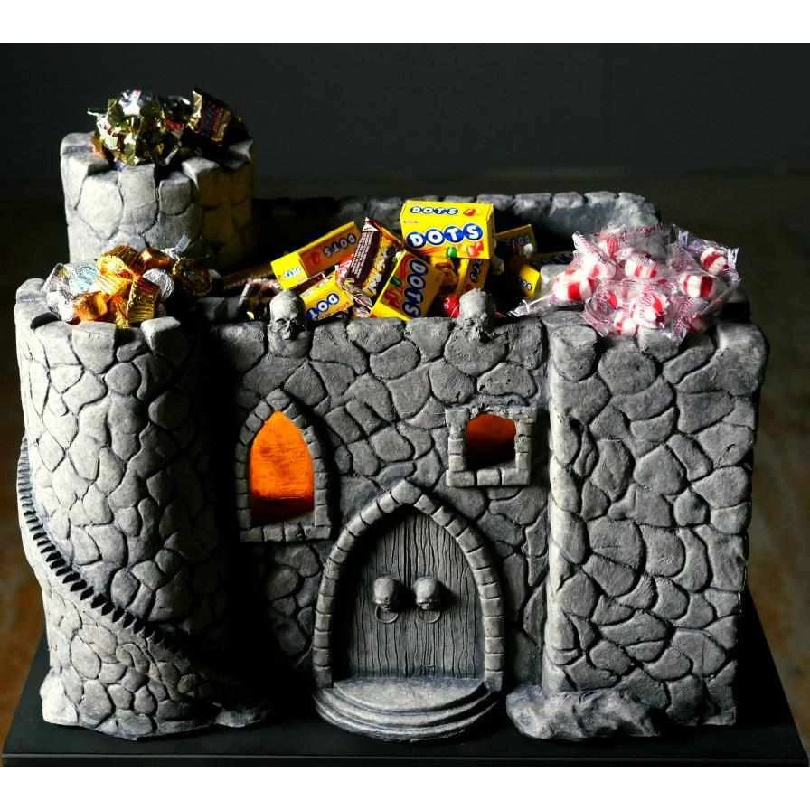 Candy Castle is a haunted castle decoration and candy bowl perfect for Halloween and parties. hand painted made of latex and foam. It includes a light to make the windows glow. Candy castle must not be exposed to candles, open flames, or high heat sources.