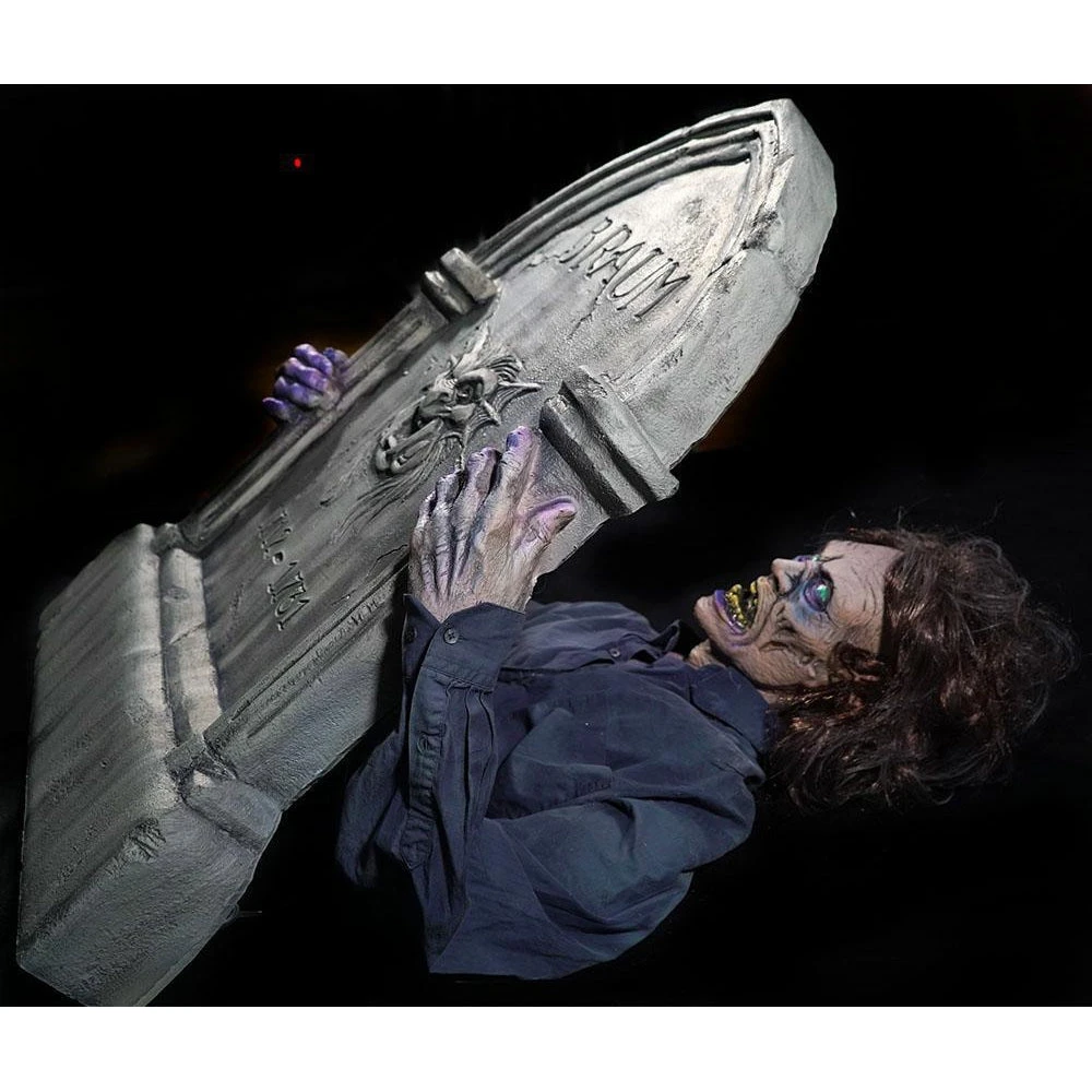 Dead Weight Tomb static zombie Prop. This Zombie tombstone prop by Distortions Unlimited is perfect for your Halloween decoration needs. Made of high quality latex and foam filled with metal armature. Great Halloween decoration and prop for yard haunts. Clothing may vary.