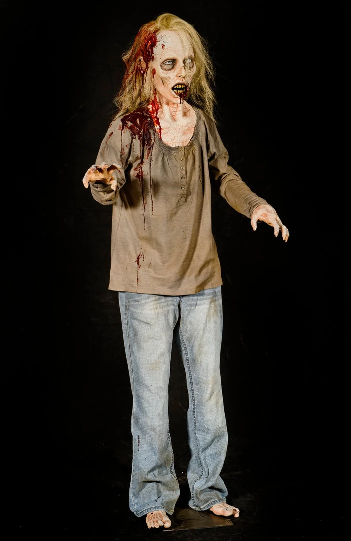 Die Ann is an all electric female zombie animated prop. This realistic life size zombie prop shakes and is a great addition to your creepy cemetery scene, yard haunt or haunted attraction. Die Ann is expertly crafted at Distortions Unlimited in the USA. Distortions has been making masks, props and animatronics for over 40 years and we build it to last. Includes link to download Frightronic audio track.