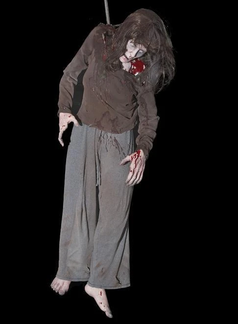 Hooked Helen shaking hanging lady. All electric animatronic. Includes link to download Frightronic audio track. Clothing may vary.