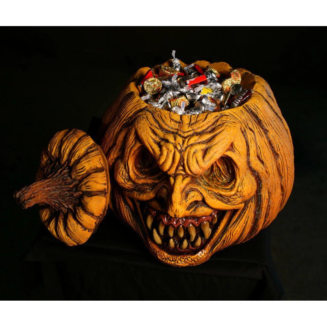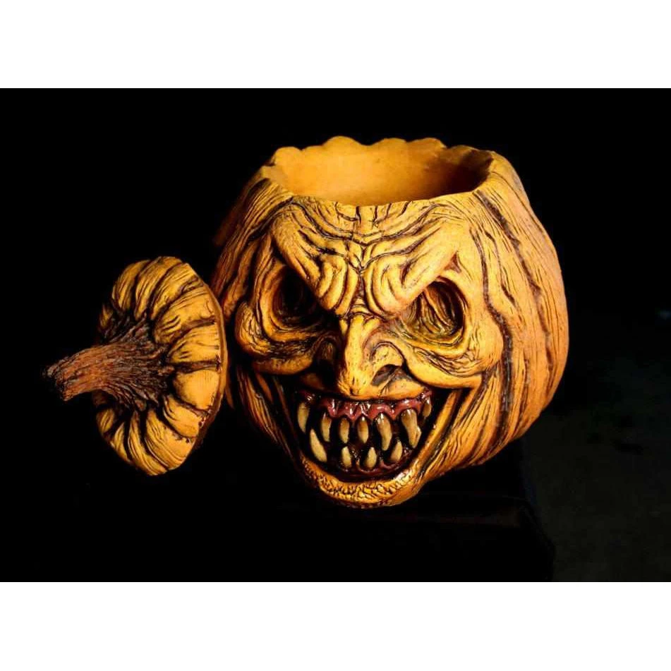 Jack-O-Licious is the Ultimate party pumpkin. This spooky Halloween pumpkin is perfect as both a prop, Halloween decoration or Holiday bowl. Fill it will candy and make it a center piece to your Halloween season. It is made of latex and foam and is hand painted. Made in the USA. Its sinister smile and sharp teeth will have your guest wondering if it is safe to reach into the head to grab the candy! Halloween pumpkin decor at its very best!