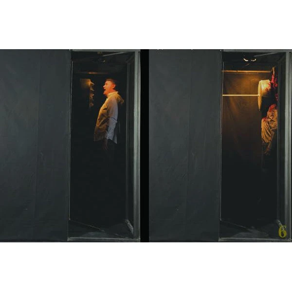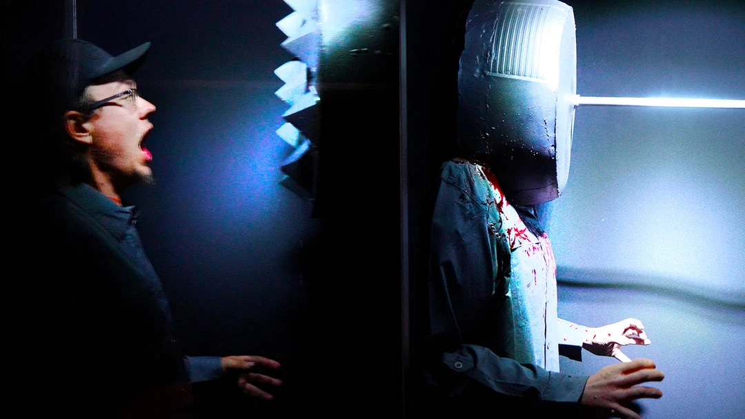 Amazing haunted house illusion that makes it appear that the actor is being squished to a bloody pulp by giant metal spikes. An actor dress in the same clothes as the latex and foam body and then stands in their place. They have a button they can push to activate the show. This incredibly effective and entertaining illusion is accomplished with light and reflection.Â