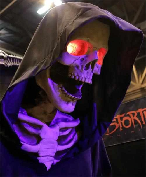 This Grim Reaper Animatronic that stands up to 13 feet tall! Watch out because death will have you! He stands, moves, talks, and has glowing eyes. We also have a version that raps. “The Grim Rapper!”
